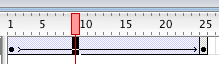 Als alles goed is gegaan, zie je een pijl tussen frame 1 en 25 in een BLAUW vlak: