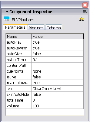 Je Sleept hiervoor de FLV Playback component naar je Stage en bekijkt de Component Inspector.