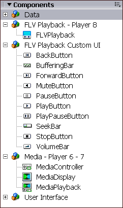 Als je liever je eigen controls samenstelt, kan dat middels de component FLV Playback Custom UI.