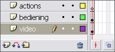 Selecteer je component op de Stage en geef het een InstanceName (b.v. filmpje). Maak twee extra lagen en noem deze actions en bediening, hernoem de bestaande laag video.