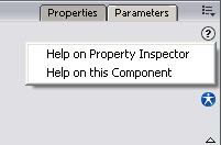 Flash heeft een uitgebreide help, hier is al vaak op gewezen. Wanneer je een component gebruikt kun je als je de properties van een component bekijkt in het property-window, een vraagteken in een cirkel klikken; deze wijst je meteen door naar de relevante onderwerpen in de help. Zie onderstaand voorbeeld: